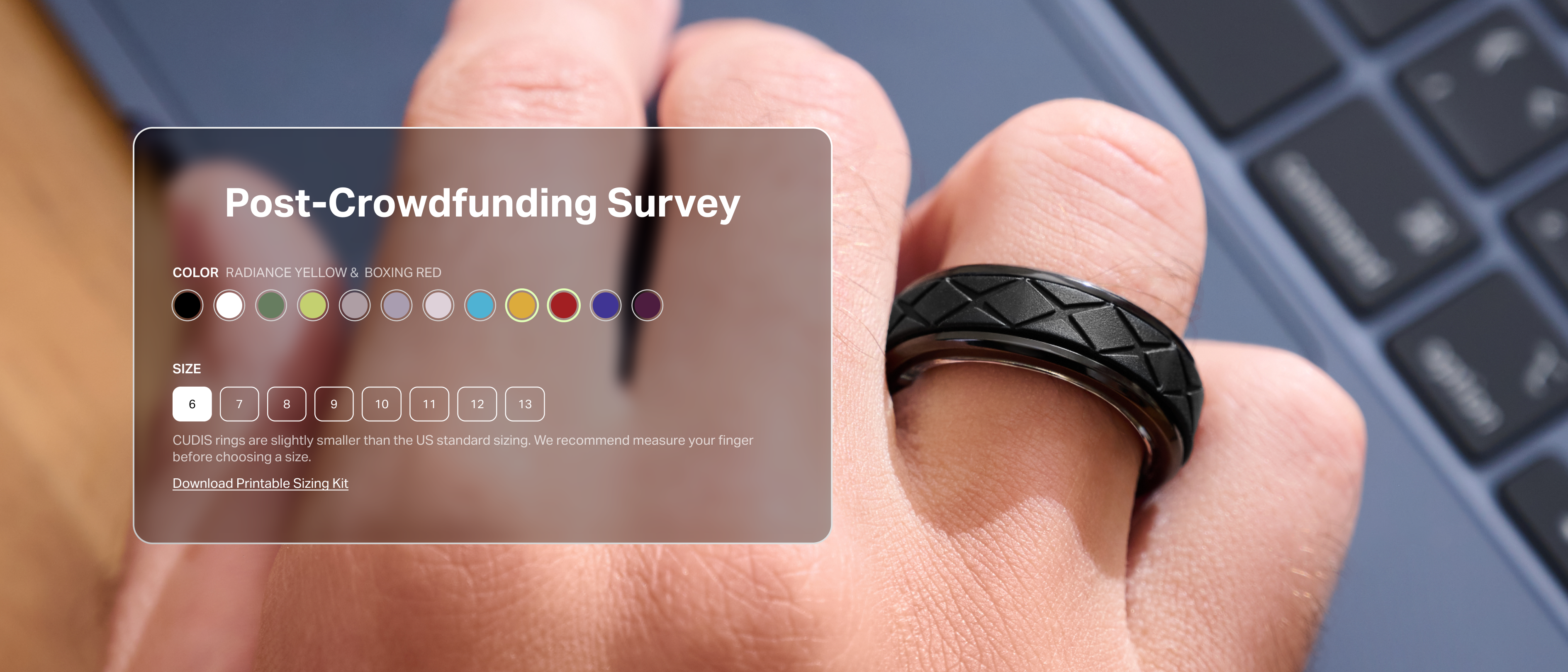 Fill the post-crowdfunding survey to confirm the final shipping address, and the color of silicone bands.
